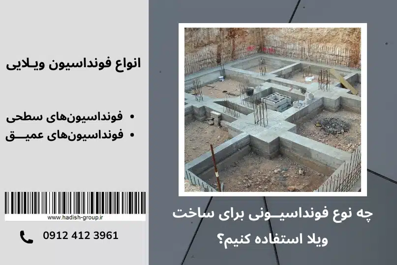 فونداسیون در ساخت ویلا نقش اساسی و حیاتی دارد، زیرا این قسمت از ساختمان وزن بار ساختمان و انتقال آن به زمین را بر عهده دارد. انتخاب نوع مناسبی از فونداسیون بستگی به ویژگیهای زمین، شرایط محیطی و نوع ساختمان دارد. برخی از انواع فونداسیونهای مناسب برای ویلا عبارتند از: